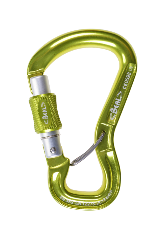 Mosquetón unidireccional con seguro a rosca, diseñado para dispositivos de retención. Gracias a su cierre que queda inmovilizado en el anillo de seguridad del arnés, es imposible que el mosquetón se voltee, por lo que el mosquetón siempre funciona en la dirección correcta y no hay riesgo de debilitar la cadena de seguridad.